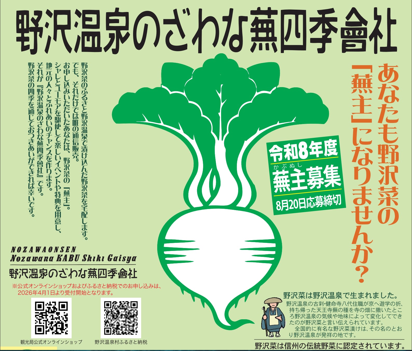 令和8年度 野沢温泉のざわな蕪四季會社 蕪主 3口